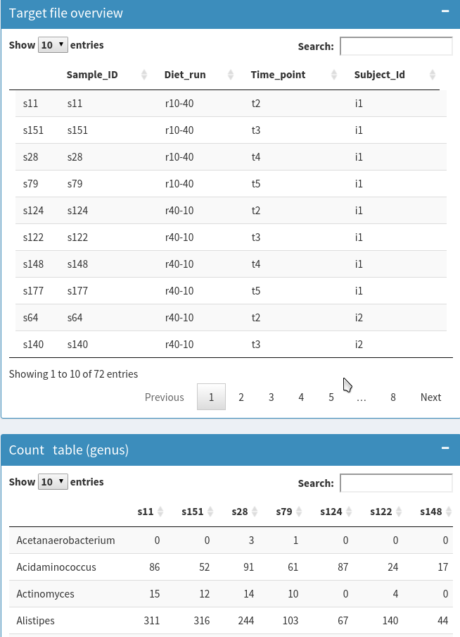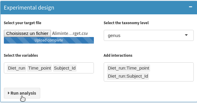 You can now upload a phylogenetic tree to calculate the unifrac distance (only available at the OTU level). The stress plot has been added to evaluate the goodness of fit of the NMDS.