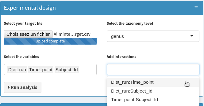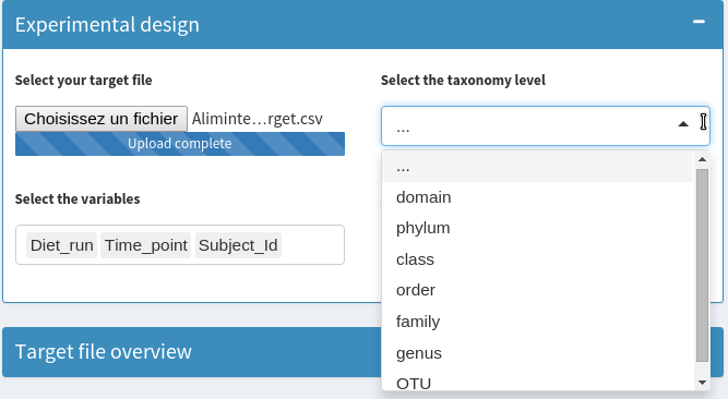 You can now upload a phylogenetic tree to calculate the unifrac distance (only available at the OTU level). The stress plot has been added to evaluate the goodness of fit of the NMDS.